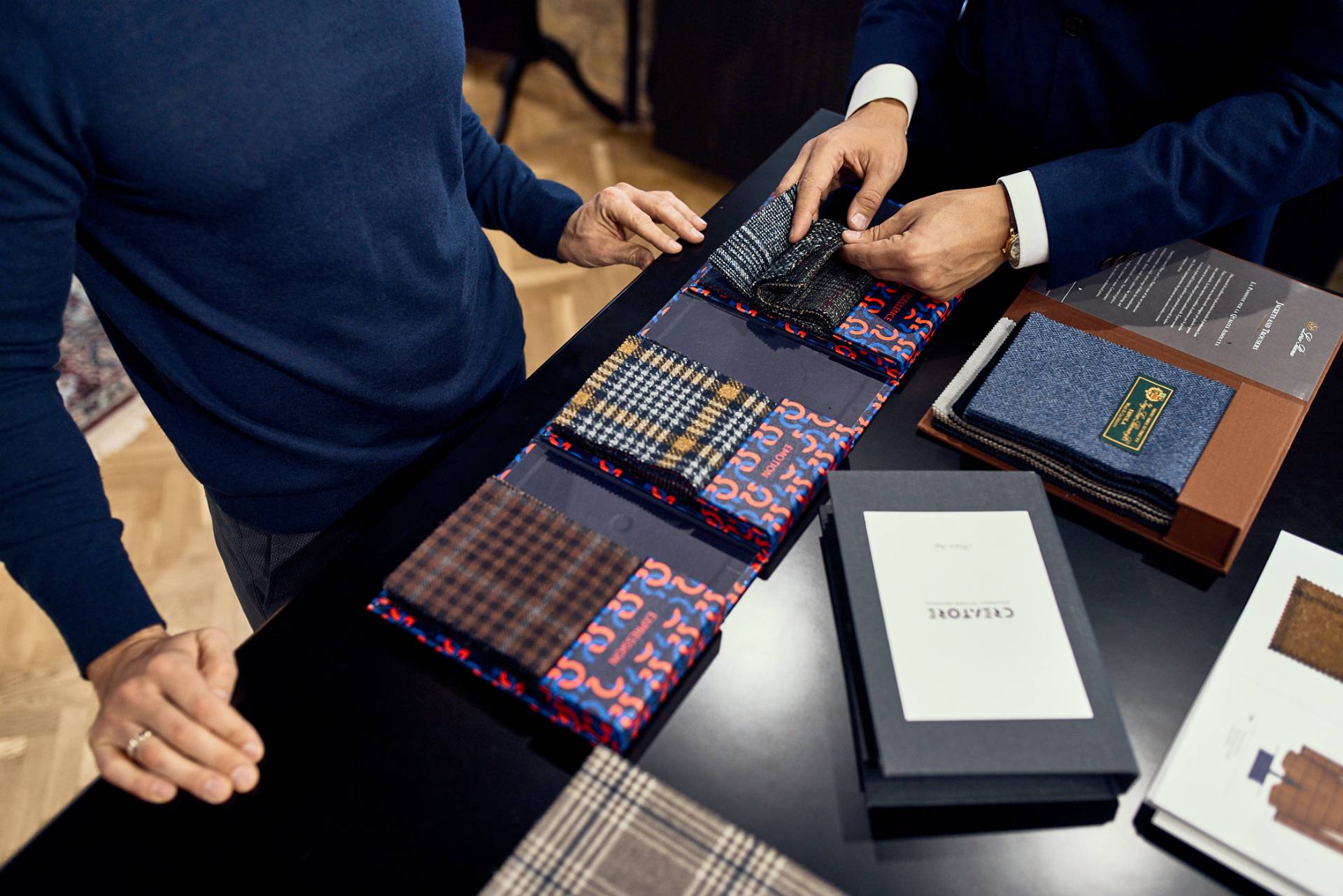 Wir fertigen Ihre maßgeschneiderten Kleidungsstücke aus Stoffen der führenden italienischen und englischen Hersteller wie Loro Piana, Ariston, Vitale Barberis Canonico etc.